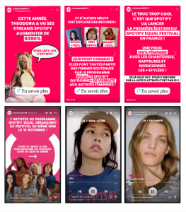 1 story Instagram dédiée, valorisant les artistes du Spotify EQUAL Festival